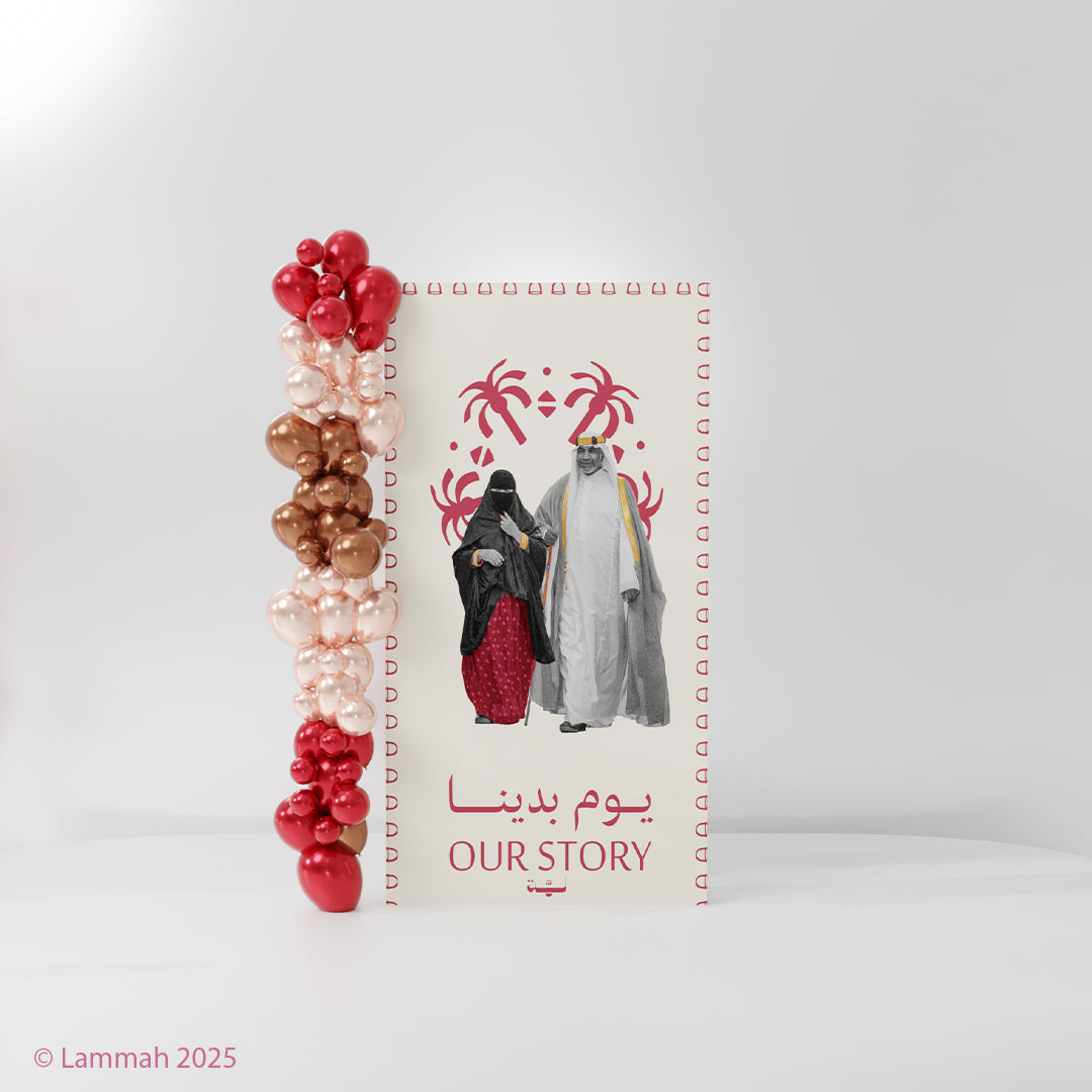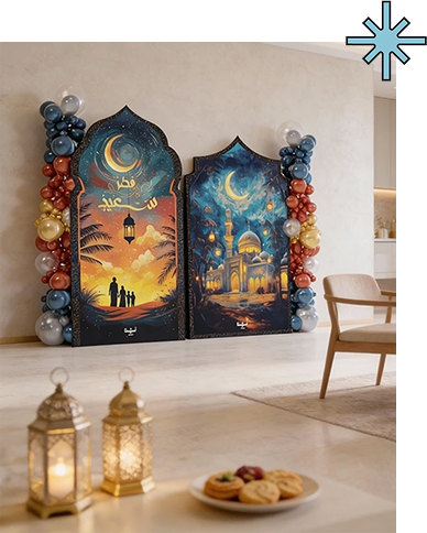 عند وصول الطلب، يقوم فريقنا بتركيب الخلفيات والبالونات بالكامل في موقع الحفلة.